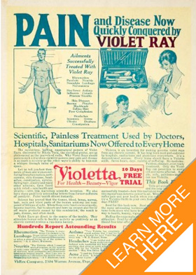 Physicians used to prescribed the violet ray for numerous diseases. As you can see from this 1930's violet ray manual some of the claims were far-fetched. However, in the 1950's when pharmaceutical companies came to the forefront, the pendulum swung to the other extreme and doctors began denouncing the violet ray as quack medicine, not giving any credence to the device.