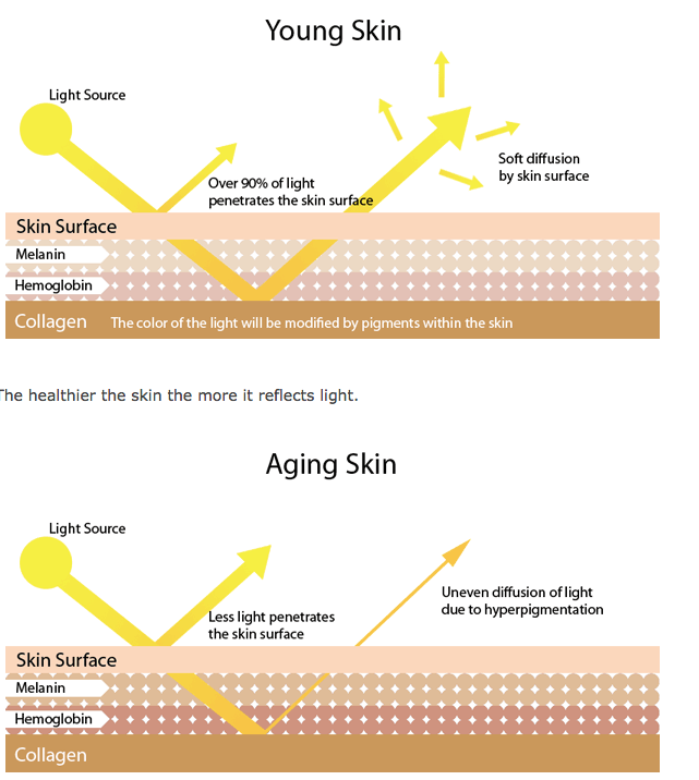 The healthier the skin the more it reflects light.