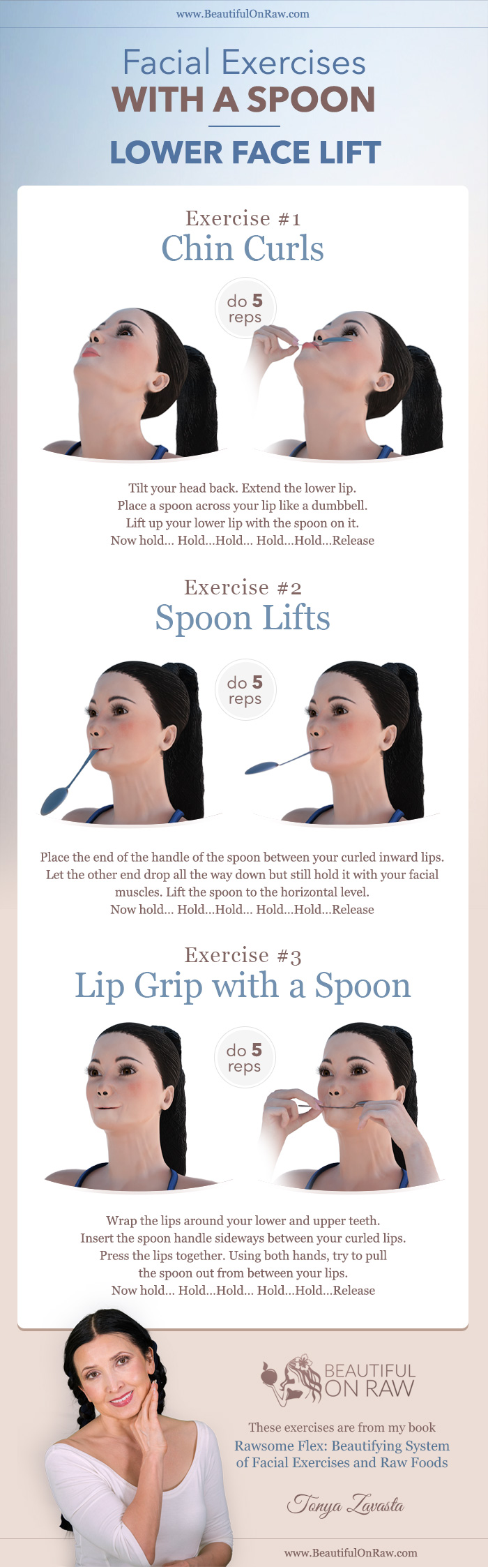 Please watch this video on Instagram. I'm doing a facial exercise with a spoon. It is cheap and safe. But it won’t come without effort. It is not work free. You are going to wriggle, stretch, contract, and pucker every day. Sound like work? It is. But facial exercises are not labor-intensive. They probably require less effort than healing from surgery—and they are certainly healthier. Learn more about facial exercising here...