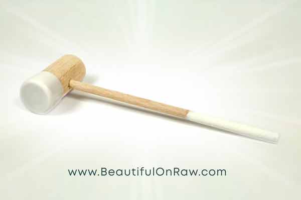 Once I had the right measurements for a wooden hammer, I ordered a small batch of hammers to my specs... but to make the head cleanable, I had to attach a cap locally, by hand. A very time-consuming process. But let’s be honest… what would I not do for beautifying and anti-aging purposes? And thus… I had my Facial Gavel. I’ve been using it for a few months, now. And I love it!