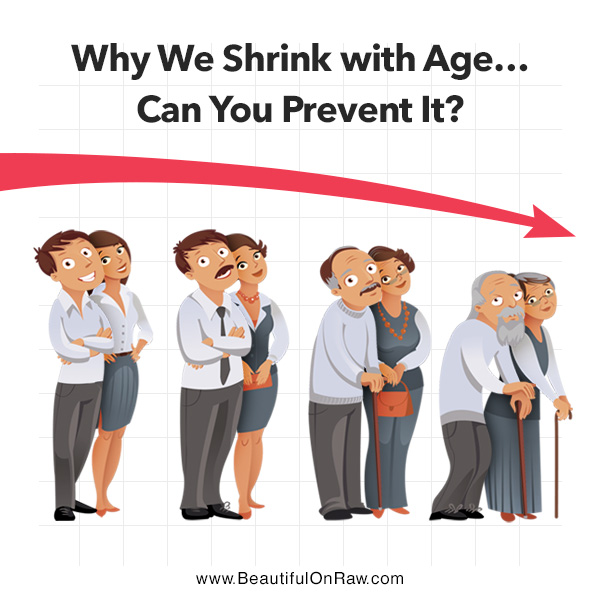 Osteoporosis, a condition in which bones become brittle and fragile from loss of tissue, typically as a result of hormonal changes, or deficiency of calcium or vitamin D, shortens the spinal column.