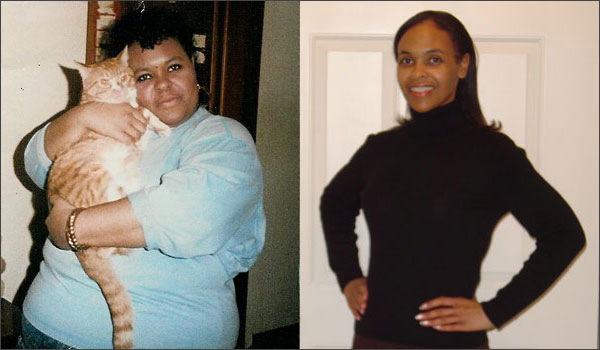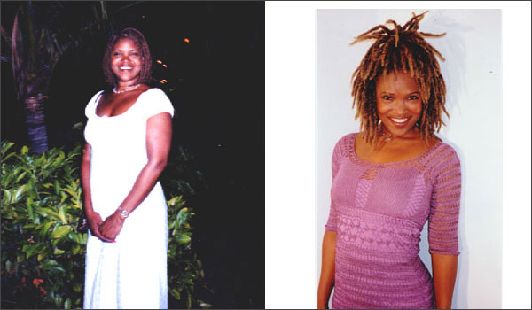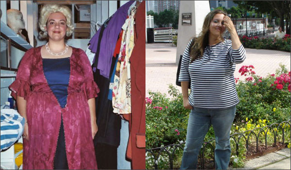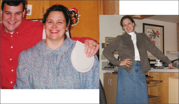 Just wanted to send you some before and after pictures to show you how positively the information you shared in your publications has affected my life. At the time of the first picture I was a lacto-ovo-vegetarian, then moved into veganism and am now transitioning to raw foods (I read You're Right to Be Beautiful, 100 Days to Raw and am currently reading Beautiful on Raw and enjoying it tremendously.) In the first photo I am wearing a costume because at the time I was singing with an opera company. By the way, I was not pregnant, just very overweight!