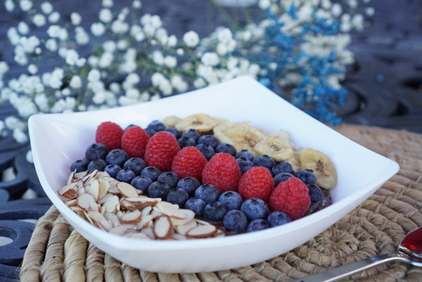 The vitality of internal organs, working properly, brightens your skin and brings a radiance to your face. How profound the meaning of the phrase "beauty comes from within." So eat for beauty! Here is your chocolaty, creamy, yet healthy breakfast.