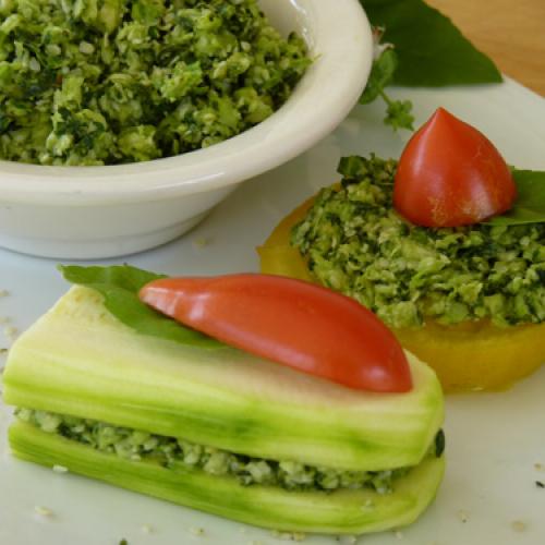 Ingredients: celery, cumin, kale, lemon, pine nuts, red onion, sweet pepper, tomato, zucchini
