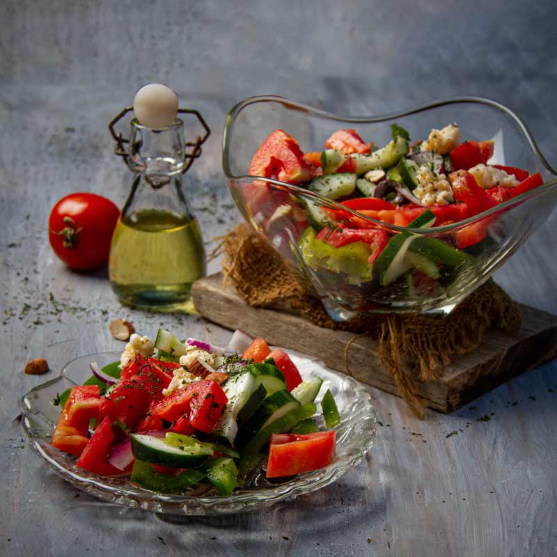 Introducing the "Mediterranean Bliss Vegan Salad" – a scrumptious and healthy vegan twist on the classic Greek salad. This vibrant creation features juicy tomatoes, crisp cucumbers, tangy red onions, and briny black olives, all tossed in a refreshing dressing made with olive oil, vinegar, and herbs. For those embracing a vegan lifestyle, cashew cheese steps in to add a creamy and tangy element, perfectly complementing the medley of flavors. Making this delightful salad is a breeze, allowing you to relish every fresh and zesty bite.