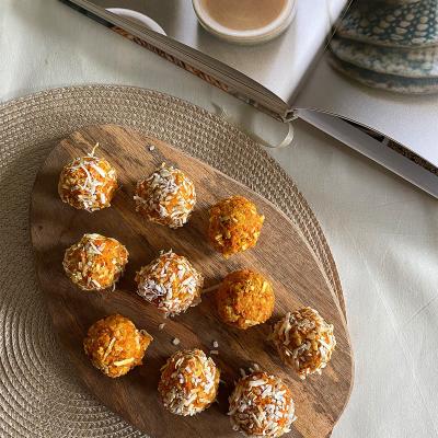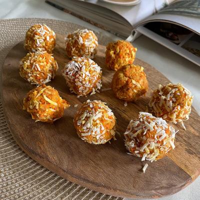 Ingredients: carrot, pecans, raw honey, coconut meat, shredded coconut