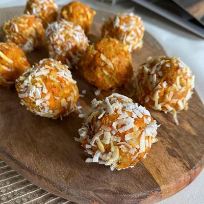 Chop carrots into large pieces and place in a food processor. Pulse until finely smooth. Add in pecans and shredded coconut. Process until smooth. Then put the mixture in a bowl and blend in the honey, spices, and melted coconut butter. Take the mixture and roll into balls. Place these on a silicone mat or wooden board. Freeze for 20 minutes or refrigerate for at least one hour. You can store these dessert “truffles” in the fridge for up to a week.