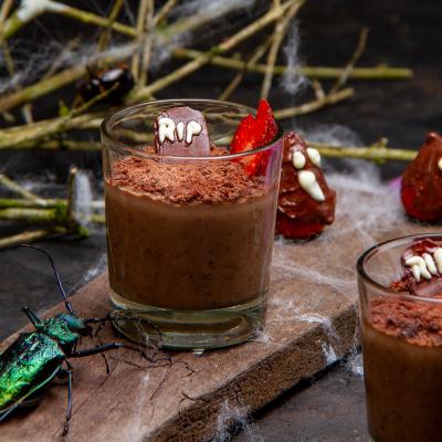 The headstones in the photo were made from raw chocolate and almond butter. Happy Halloween!