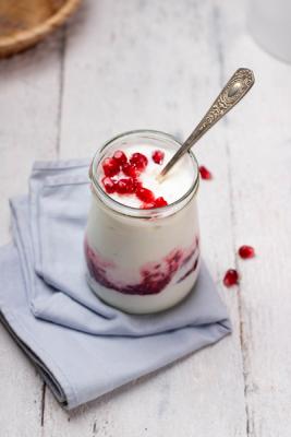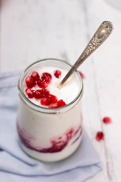 Raw Coconut Yogurt with Pomegranate and Chia Sauce