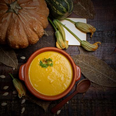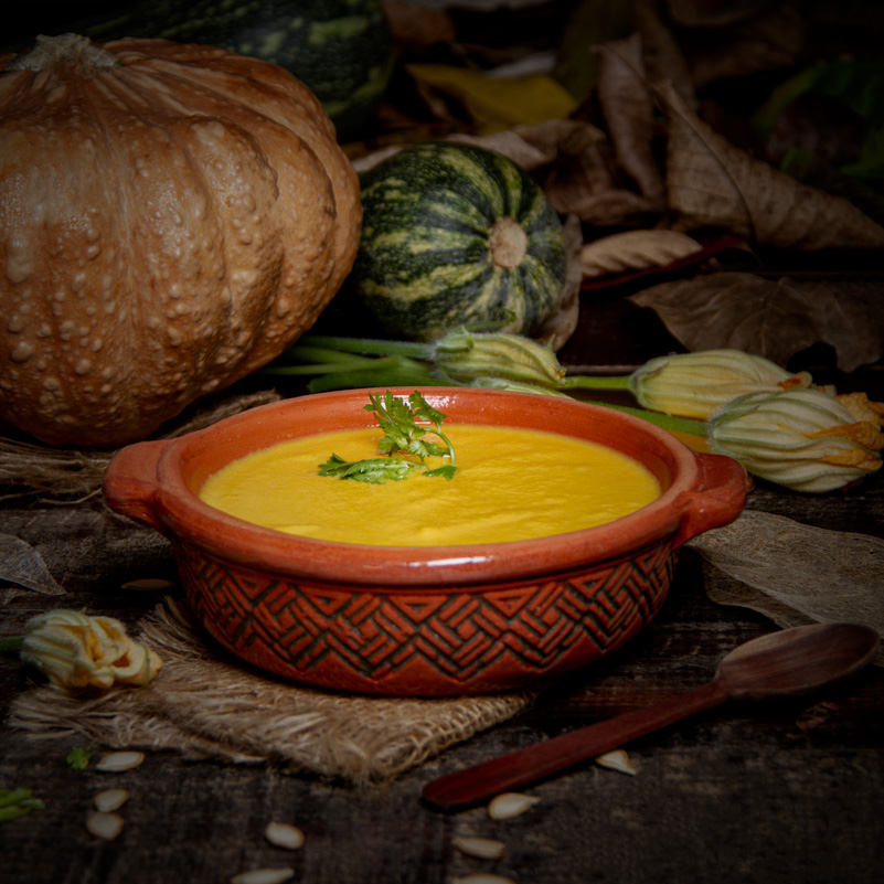 Ingredients: pumpkin, pumpkin seeds, cashew, coconut milk, ginger root, turmeric
