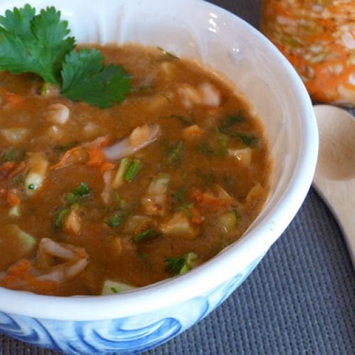 If you ever miss clam chowder, then this soup is for you. It can be served cold or even warmed up in a blender or on a stove top to about 100F.