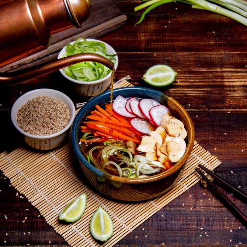 Ingredients: Shiitake mushrooms, coconut water, coconut, yellow bell pepper, parsnip, avocado, onion, dill, sea salt, dash black pepper, lemon juice