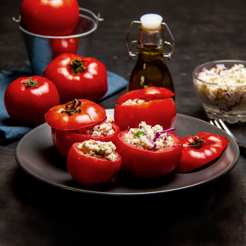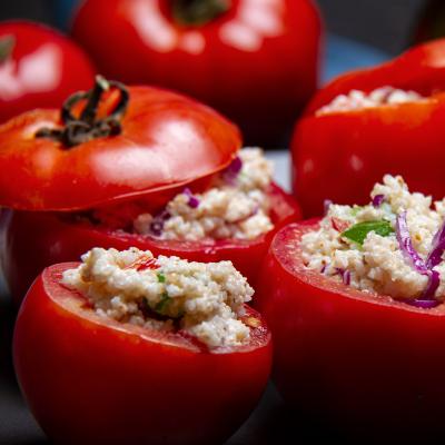 With tomatoes, you can make an endless array of salads, juices, cold soups, and more. But here’s a way we don’t often enough think of. An especially attractive and more sophisticated way. Perfect for special occasions and serving guests. The stuffed tomato.