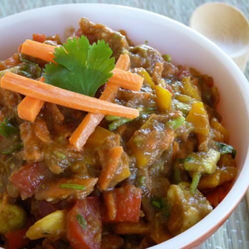 Ingredients: red tomatoes, quinoa, red bell pepper, celery, red cabbage, cashew