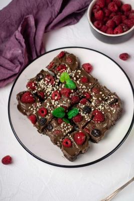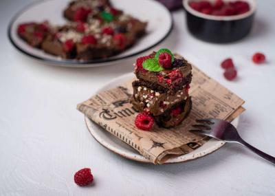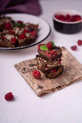 Here’s a perfect chocolate treat and it’s completely raw! With beautiful raspberries on the top, it’ll soon become your favorite raw brownie recipe.