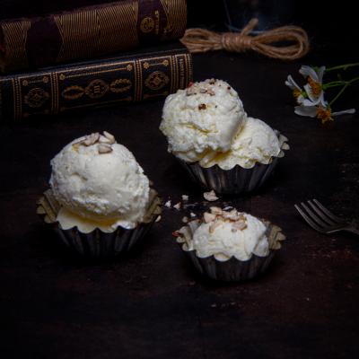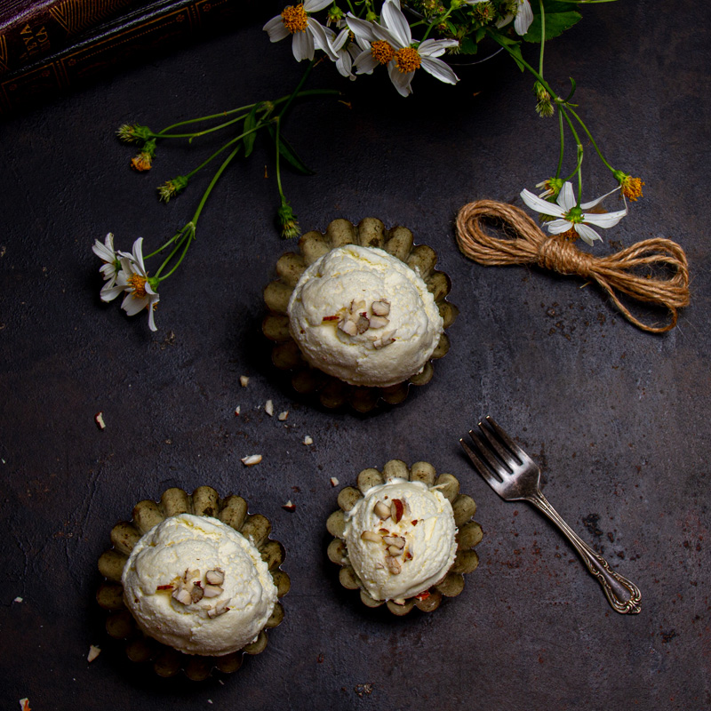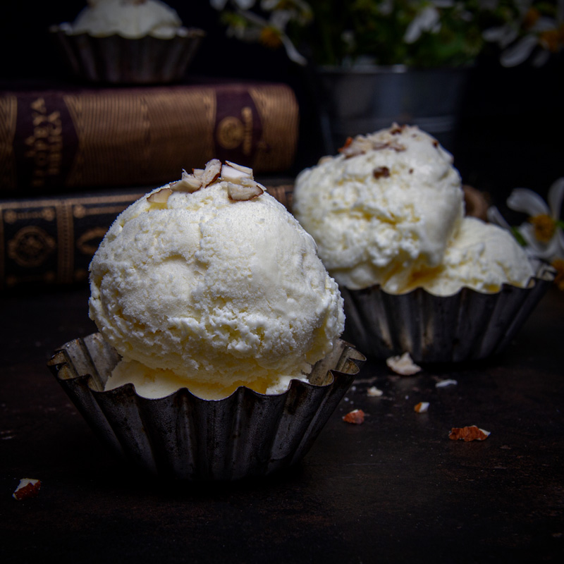 If you don’t have an ice cream machine, freeze the ice cream and, every two hours, remove it from the freezer, and, with a spoon, scrape the surface of the ice cream to break the crystals, until you reach the bottom. Repeat this procedure about three times. Serve this delicious ice cream with walnut chunks, mint leaves, or chopped fruits.