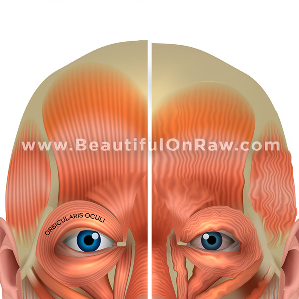 No. Here’s why…You create a stretching pressure in this muscle with your fingers. Then, by contracting the muscle, you’re actually stretching the muscle’s collagen fibers, evening them up and restoring their function. These exercises will prevent your orbicularis oculi from becoming tight and rigid. Exercising this muscle will prevent it from drying up and shrinking.