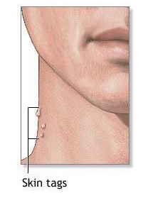 Even if not by that name, you certainly know them: those (usually) tiny, roundish flaps you find here and there on the body, protruding above skin level. Common locales: armpits, neck, shoulders, crook of the elbow or knee, though they can occur just about anywhere, especially where skin rubs on skin. They look like little extra bits of skin, often dangling on a small stalk.