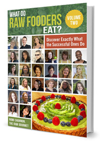 I want to introduce you to Nomi Shannon's new ebook What Do Raw Fooders Eat? Volume 2. Nomi takes you to visit the homes of 24 busy people who thrive on raw foods - yours truly included! Peek inside their private kitchens. Spy on them as they prepare meals for a whole week. This collection will give you hundreds of new ideas to thrill your taste buds and shake up your menu plan.
